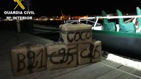 El aviso fue participado por un helicóptero de Salvamento Marítimo, que siguió a la embarcación durante la persecución, durante la cual la droga fue arrojada por la borda por sus dos tripulantes