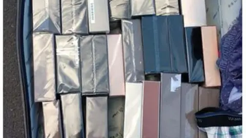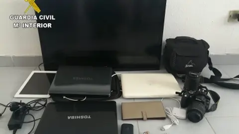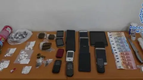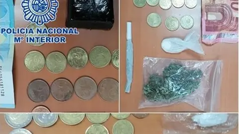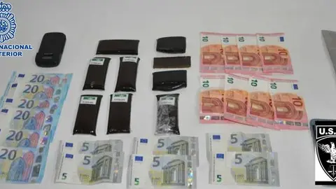 En el registro efectuado en la vivienda han sido incautadas 57 dosis de cocaína, 69 gramos de marihuana, 200 gramos de hachís, 2 gramos de heroína y otras sustancias pendientes de análisis, además de 15 teléfonos móviles, una tablet y un cuchillo de grandes dimensiones