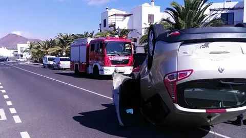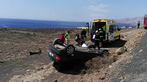 La única ocupante del vehículo se encontraba fuera cuando llegaron los bomberos y atendida en principio de heridas leves por parte de los operarios del Servicio Canario de Salud