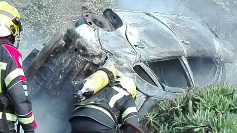 Un testigo del accidente acudió inmediatamente al lugar en el que se encontraba el vehículo y sacó a la conductora herida de su interior justo antes de que ardiera por completo
