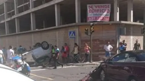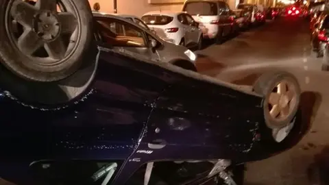 Dos vehículos han colisionado en un peligroso cruce donde no han funcionado los semáforos en las últimas semanas. Como consecuencia, uno de los coches quedó volcado en la vía