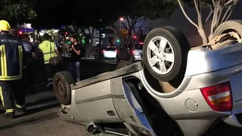 Los bomberos no tuvieron que sacar esta vez a los ocupantes del vehículo. Uno de ellos necesitó eso sí que le colocaran un collarín. Poco después se produjo otro accidente en la zona de la Ciudad Deportiva al chocar otro coche contra una farola