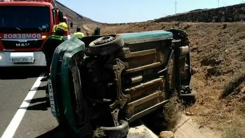Uno de los ocupantes quedó atrapado en el siniestro, registrado en la LZ-2, a la altura de Lanzarote a Caballo