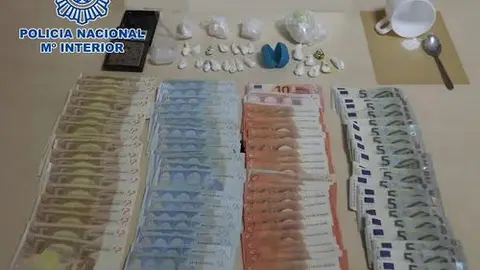 Tras la práctica de un registro domiciliario se intervino la cantidad de 108,3 gramos de cocaína, 4.215 euros, material de corte y dos balanzas de precisión