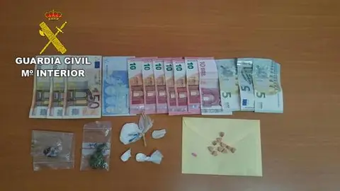Les fueron intervenidas 10 dosis de cocaína preparadas para su venta, un envoltorio con 10 comprimidos de éxtasis y una dosis del medicamento Tranxilium 50, además de 255 euros en billetes de diverso…