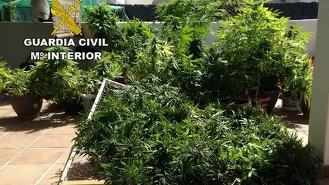 Detenidas dos personas que tenían una plantación de marihuana en una vivienda de Playa Blanca, donde se incautaron un total de 74 plantas de marihuana en diferentes fases de cultivo