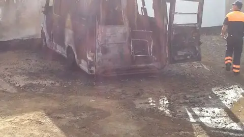 El fuego, que se ha iniciado sobre las 3:50 en la calle Almería, del barrio de Altavista, ha terminado por completo con la ambulancia de la Asociación de Voluntarios S.A.C.