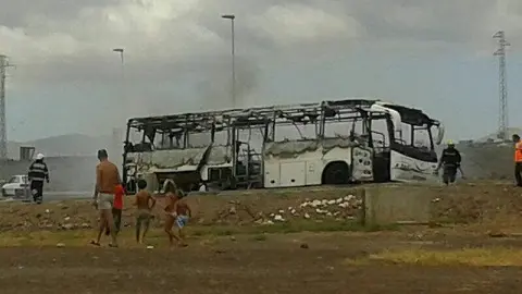 En el interior viajaban sólo cuatro pasajeros, que resultaron ilesos. La espectacularidad de las llamas hizo que el incendio se pudiera ver desde larga distancia