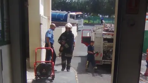 Una columna de humo se elevó varios metros por encima de la vivienda abandonada donde se originó el fuego. No ha habido víctimas, aunque los bomberos se han tenido que emplear a fondo porque había una cantidad importante de basura acumulada