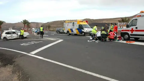 Dos heridos de carácter leve después de que una mujer arrollara este domingo con su vehículo tres turismos que estaban estacionados en Tinajo