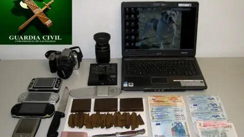 Al detenido se le intervinieron 447 gramos de hachís, 935 euros en billetes fraccionados, dos balanzas digitales de precisión, un portátil y dos cámaras fotográficas
