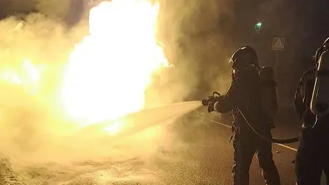 Sucesos Todo apunta a que el fuego fue provocado ya que no es la primera vez que los bomberos deben acudir a esta vía por el mismo motivo Tres vehículos de una misma empresa, afectados por un incendio en la calle Tenderete Crónicas 1/10/24