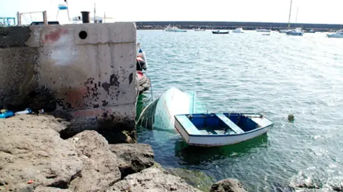 La Guardia Civil detectó la lancha neumática a las 22:50 horas de este jueves mediante un radar cuando la embarcación navegaba a 2' 5 millas náuticas de Charco del Palo (Haría )