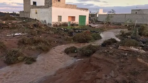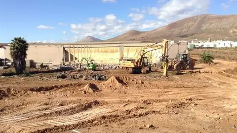 El Consorcio insular de Seguridad y Emergencias interviene en un depósito estallado y con peligro de desborde en la carretera de Tahíche, entre San Bartolomé y Teguise