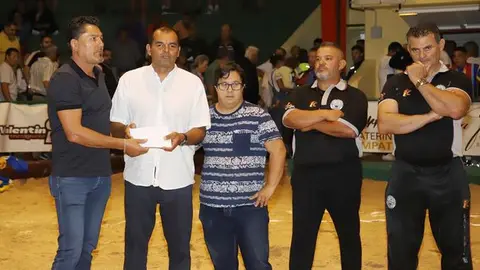 La entrega se materializó en el terrero de San Bartolomé tras el encuentro de la Supercopa de Lanzarote, que tuvo al Club de Lucha Unión Sur Yaiza como flamante campeón