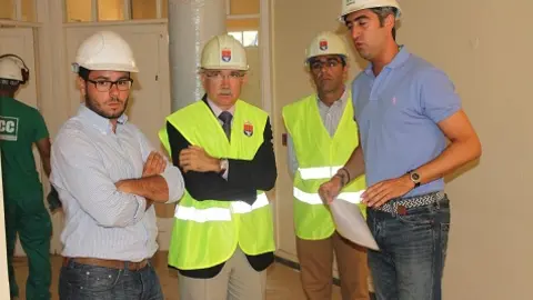 El alcalde Cándido Reguera, junto al primer teniente de alcalde, José Montelongo, y el concejal de Juventud, Joel Delgado, visitaron este lunes los trabajos