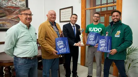 El alcalde de Teguise, Oswaldo Betancort, y la directiva del CSC Nazaret, le hicieron entrega de un regalo durante un encuentro muy especial con sus familiares