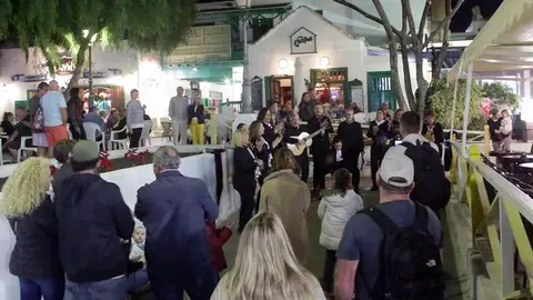 Las canciones más populares de la emblemática Agrupación Folclórica Guadarfía ambientaron este miércoles el Paseo Artesana y el Coro Rociero hizo lo propio el jueves en las inmediaciones del Pueblo Marinero