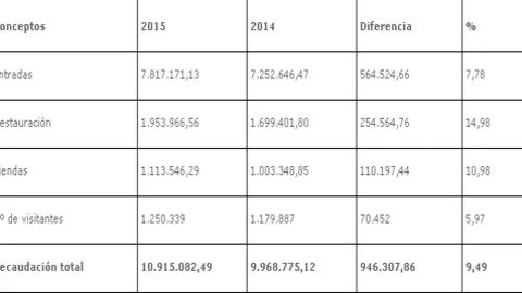 Se produjeron aumentos en todas las variables en relación a junio del pasado año: del 26,51% en restauración, del 22,86% en tiendas y del 15,56% en la recaudación por entradas vendidas