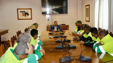 Jacobo Medina ha mantenido por la mañana una reunión con una veintena de trabajadores de la UTE Márgenes Lanzarote para abordar la situación de estos empleados tras la extinción del contrato