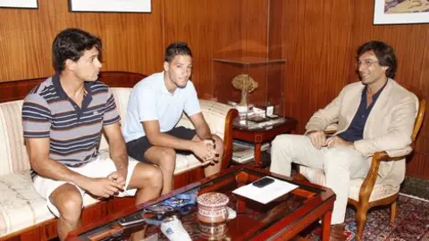 El vicepresidente primero de la Institución, Joaquín Caraballo, y la consejera del Área de Seguridad y Educación Vial, Migdalia Machín, reciben -en un encuentro distendido- a los jóvenes y tutores del programa