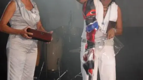 La cantante, que recibió un obsequio de manos de la presidenta del Cabildo, se unió al público al finalizar la actuación