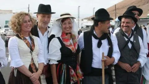 El alcalde de Tinajo, Jesús Machín, se encontraba ataviado con el típico atuendo de romero y actuó como buen anfitrión ante los miembros del Gobierno de Canarias y ante el resto de políticos que no quisieron faltar a la cita