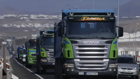 Las calles de la capital lanzaroteña se han visto colapsadas por la marcha iniciada a las 9 de la mañana por unos 300 transportistas, desde la gasolinera de Tías hasta la sede del Cabildo y la Vía Medular, en protesta por el encarecimiento del carburante. Una colisión entre dos camiones en la LZ-1 provocó el caos circulatorio